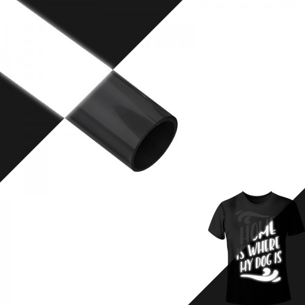 Внимание! Данная пленка обладает очень слабым световозвращающим эффектом и может использоваться только как обычная черная термотрансферная пленка